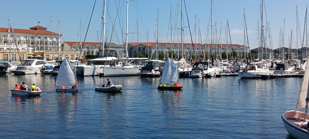 Mit unseren Optimisten (Optis) lernen die Jüngsten die Grundlagen des Segelns: Wind, Wellen, Kurs und natürlich Teamgeist. Wer dann Lust auf mehr bekommt, kann in begleitet weitersegeln und die ersten Segelscheine wie den Jüngstenschein oder die Vorbereitung für den Sportbootführerschein machen.